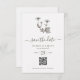 Faça com que o anúncio do seu casamento seja fácil e na moda com este boho Guarde o Cartão de Data. Apresenta trabalho de arte de flor selvagem desenhada manualmente e espaço para um código QR personalizado ligando-se ao seu site de casamento. Perfeito para casamentos rústicos, jardins ou ao ar livre. Elegante, moderno e totalmente personalizável.