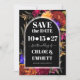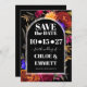 Uma arca preta de Boho com quadros de borda transparentes. Você Salva os detalhes de Data. O texto em negrito dá a este outono Salvar a Data como uma víbora de tendência. Os florais são queda pura. Vermelho robusto, laranja brilhante, cheio de púrpura e rosa. O dorso também é preto com buquê de queda. Este elemento faz parte da Coleção Floral Moderna do outono. Envie-me uma mensagem se precisar de ajuda para encontrar itens correspondentes. Meu nome é Nelda e eu adoraria ajudar.