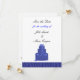 Um design clássico com um bolo de casamento em azul real. Flores em cascata com sotaque azul e fitas bonito. Personalizar com nomes e data de casamento, conforme desejado.
