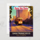 Convite de casamento save the date São Francisco, cartão-postal de viagem. Bonde subindo as colinas, com prédios ao fundo.