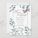 Este anúncio de casamento do Save the Date bonito apresenta duas libélulas a aquarela, uma em tons de azul e verde com asas iridescentes e a outra com asas em tons de roxo e rosa. Eles estão assentando em um arranjo simples de vegetação natural de jardins de aquarela em tons de verde, azul, cinza e marrom com fundo branco. -