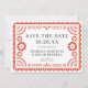 Este belo papel picado inspirou o casamento, exceto a data design apresenta um quadro de ornamentado vermelho quente, texto de cinza escura, fundo branco e tipografia moderna. Esta elegante, porém moderna design é uma escolha fabulosa para um casamento de Latinx ou para o casamento de destino do México. Na parte de trás está sua própria foto horizontal "sangramento de cheio", que pode ser removida se desejar.