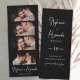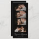 Bookmark de Foto Minimalista com Script Elegante na moda Salve o cartão Data em preto. Possui um elegante script de nome de caligrafia com letra branca e 4 fotos em fundo preto. Estes marcadores de fotos são uma forma perfeita de anunciar seu dia especial a todos os seus amigos e familiares.