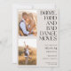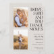 Esta divertida "Booze, Comida e Maus Movimentos de Dança" Dois Casamentos Fotográficos Salve a Data é a forma perfeita de deixar seus entes queridos saberem que estão em uma celebração selvagem e inesquecível! Se você está planejando um casamento que é sobre bons tempos, companhia de excelentes, e muitas risadas, este cartão é o que você precisa para dar o tom. Personalize com duas fotos de noivado e seus detalhes de casamento.