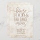 Esta salvação apresenta um fundo rústico e "bebida, comida e maus movimentos de dança" para criar uma maneira divertida de dizer aos seus convidados a data do seu casamento.