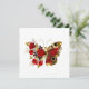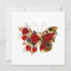 Borboleta de flores de olhos vermelhos, de cor pavão, com asa vermelha texturizada, decorada com a composição de rosas vermelhos pintados artisticamente com caules ouros e folhas sobre fundo branco.