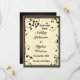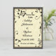 Lindo desenho de casamento com símbolos musicais, folhas e silhueta de borboleta. Um painel de madeira colorido e um design de fundo texturizado. Isso é ideal para casamentos, aniversários e ocasiões especiais. Personalize este modelo com suas informações. Edite-o para mais alterações.