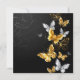 Borboletas Douradas, joias e brancas sobre fundo preto. Borboleta ouro.