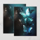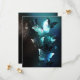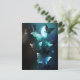 Borboletas luminosas de menta à noite em um fundo abstrato preto.