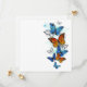 Borboleta azul-clara e voadora morfo e borboleta-monarca laranja num fundo branco. Morpho. Borboleta monarca. Design com borboletas.