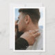 Um lindo cartão de salvar a data com uma simples borda branca e tipografia elegante. Apresenta duas grandes fotos na orientação retrato, mostrando seus momentos especiais compartilhados juntos. A caligrafia superdimensionada que sangra sobre a foto e a borda adiciona um toque de drama e romance, enquanto o layout minimalista garante uma estética moderna e sofisticada. Perfeito para casais que buscam um anúncio de casamento moderno e clássico. Seus convidados vão apreciar esse design exclusivo de dois lados e ele vai definir o tom para o seu belo dia de casamento.