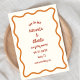 Este design apresenta uma simples, branca, estilo desenhado à mão, uma borda ondulada. A fonte usada para o texto principal é casual e divertida, com uma qualidade manuscrita, dando-lhe um toque pessoal e íntimo. Use esta design se quiser priorizar uma vibração amigável e acessível ao seu casamento sobre a formalidade.