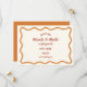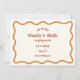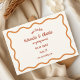 Este design apresenta uma simples, branca, estilo desenhado à mão, uma borda ondulada. A fonte usada para o texto principal é casual e divertida, com uma qualidade manuscrita, dando-lhe um toque pessoal e íntimo. Use esta design se quiser priorizar uma vibração amigável e acessível ao seu casamento sobre a formalidade.