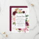 Defina o tom do seu casamento inesquecível com este cartão "Save the Date" floral burgundy Moody. Com belas flores em aquarela em tons de ameixa e blush, folhas verdes terrosas e acentos românticos de respingos de ouro, este design captura tanto o charme rústico quanto a elegância dramática. Perfeito para casamentos de outono, celebrações em vinhedos ou temas românticos sombrios. Personalize com seus nomes, data e local do casamento para criar uma primeira impressão deslumbrante.