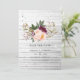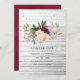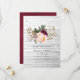 Convite de casamento rústico country barn em aquarela com borgonha e pêssego peônia, projetado para ser personalizado rápida e facilmente de acordo com os detalhes do seu evento. Ideal para qualquer tema ou casamento no jardim.
