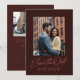 Este convite de "salve a data" elegante apresenta uma escrita inspirada no estilo retrô "salve a data" sob uma única foto em um fundo burgundy moderno, juntamente com um texto personalizado simples. O verso deste convite de "salve a data" moderno tem uma faixa borgonha coordenada com uma foto horizontal, espaço para uma mensagem personalizada e um código QR para o site do seu casamento. Este design vertical é ótimo para um casal moderno e elegante e é uma ótima maneira para o casal de noivos compartilhar informações do casamento com amigos e familiares. Encontre mais cores e estilos na coleção de Lea Delaveris Design. Também disponível como download digital de convite de "salve a data".