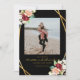 Atualize sua foto de casal favorita para este elegante casamento preto e dourado salve o cartão de anúncio de data, com a trending frame geométrico dourado. Decorado com uma bela e arrogante pincelada e florais brancos, e botânicos verdes. Tipografia de ouro personalizável em todo o cartão de data save. O fundo do convite tem um belo leito dos mesmos florais