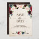 Modelo de cartão de "salve o dia" de casamento floral rústico country elegante em tons de burgundy vermelho naval rosa com folhagem botânica verde e folhas de eucalipto em fundo de madeira. Este lindo design fácil de personalizar pode combinar facilmente com as cores, estilos e tema do seu casamento e é uma escolha perfeita para casamentos rústicos de outono, verão ou inverno. Você pode encontrar mais designs correspondentes na minha loja ou entrar em contato comigo se precisar de ajuda na personalização do design.