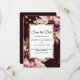 Defina o tom para a celebração da sua noite dos sonhos com este cartão romântico de 'save the date' com um fundo borgonha profundo, flores delicadas em rosa desbotado e luzes de corda brilhantes. A moldura dourada elegante adiciona um toque de luxo, enquanto detalhes suaves em aquarela tornam este design perfeito para temas de casamento de outono, inverno ou rústico. Personalize facilmente com os detalhes do seu casamento — nomes, data e local — em apenas alguns cliques.