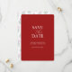 Anuncie o noivado com estes simples convites de "save the date" de casamento sem foto para o feriado. Eles apresentam uma mistura de tipografia clássica e cursiva em branco sobre um fundo vermelho-berries sólido. O cartão tem no verso um padrão botânico em aquarela com berries e folhas vermelhas e verdes. Use os campos do modelo para personalizar com seu nome e data de casamento. Até personalizar as cores para combinar com o tema de casamento desejado. Escolha entre uma variedade de cartões de qualidade. Meu favorito para este é o brilho pérola. Um design minimalista para casamentos e anúncios de noivado durante as festas de Natal. Para ver o conjunto de papelaria de casamento correspondente com as tendências de casamento e para obter mais ideias de casamento de Natal visite www.zazzle.com/dotellabelle