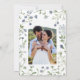 Anuncie seu dia especial com este elegante Cartão Botânico de Aquarela Salve a Data. Apresentando designs florais pintados à mão em verdes tranquilos e azuis, este cartão incorpora a beleza natural e o encanto de um casamento de jardim. A opção de incluir uma foto pessoal na página traseira adiciona um toque significativo, fazer que seu anúncio seja realmente exclusivo. Perfeito para casais que adoram eternos, detalhes inspirados na natureza, este cartão Salvar a Data define o tom para uma bela celebração. Personalize com seus detalhes de casamento e compartilhe um vislumbre da alegria a vir.