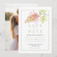 Celebrate your upcoming wedding with this elegant botanical Grevillea floral Save the Date card, inspired by native Australian flowers. The front features a delicate botanical Grevillea fine art design in soft greens, golden yellows and orange coral colors, while the reverse side allows you to add your own special engagement photo, creating a personal and memorable announcement for friends and family. Perfect for garden, rustic, native Australian, or botanical themed weddings, this stylish Save the Date combines natural beauty with modern simplicity. Personalize with your names, wedding date, and favorite photo to create a unique keepsake your guests will love. Unique design and original hand painted pan watercolor fine botanical flower art by Sarah Trett exclusively for www.mylittleedenweddings.com on Zazzle.