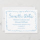 Capturar a magia do seu dia especial desde o início com o nosso azul-claro e branco, salve a data da carta horizontal! Infundido com o delicioso rabisco branco e azul e personalizado com seus nomes e data de casamento, este cartão é uma prévia encantadora da alegria a vir. Com seu design e tons frescos lúdicos, a nossa carta salva o cartão de data define o tom perfeito para sua próxima celebração. Quer você esteja planejando um caso de jardinagem na primavera, uma reunião de verão perto do mar ou um conto de fadas de inverno, esta carta convida seus convidados a se juntar à jornada caprichosa em direção a sua alegria para sempre. Projetado para complementar sem problemas a nossa encantadora coleção de convites para o casamento, o nosso cartão de identidade garante uma apresentação coesa e cativante que deixa uma impressão duradoura. Adote a magia do amor e do riso quando convidar o seu mais próximo e querido a marcar os seus calendários para o seu dia especial. Com fácil personalização on-line, você pode personalizar cada detalhe para refletir seu estilo e personalidade exclusivos. Deixe que o cartão de data seja o primeiro capítulo da sua história de amor, cheia de calor, maravilha e a promessa de felicidade para sempre.