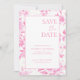 Este cartão "Salvar a Data", cor-de-rosa e branco refinado, mostra uma elegante fronteira floral inspirada em toile e um centro nítido e minimalista para os detalhes do seu casamento. Uma tipografia belamente equilibrada emparelha uma escrita graciosa com a letra serif clássica para um eterno, romântico. Totalmente personalizável com seus nomes, data de casamento, local e site, esta design é perfeita para apresentar sua celebração com estilo. Uma escolha ideal para casamentos tradicionais, jardins ou costeiros, criando a primeira impressão perfeita para o seu dia especial.