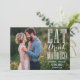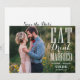 Coma, Beba e Case-se! Anuncie a data do seu casamento com este anúncio personalizável de "salve a data". Ele apresenta uma tipografia mista. Personalize adicionando seus detalhes. Este anúncio de "salve a data" com foto está disponível em outras cores e cartões.