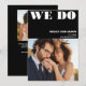 Esse anúncio simples, preto-e-branco, de "nós fazemos fotos salvas-as-da-data" captura a essência da simplicidade e sofisticação. Apresentando um bloco preto no topo com WE DO em negrito e sua foto no fundo. O reverso apresenta uma segunda foto com sua mensagem e o site do casamento em um fundo preto.
