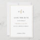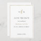 Esta elegante placa Save the Date apresenta as iniciais do casal rodeadas por uma borda de folha dourada. A fonte serif clássica complementa o fundo preto e branco e anuncia os detalhes do casamento que se avizinha. O convite dá o tom de um casamento que é grandioso e simples.