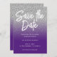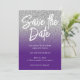 Sobreposição de arte digital com brilho falso cinza prateado sobre roxo real para as informações da data de salvamento do seu casamento.