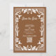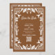 Um design moderno estilo de vaqueiro ocidental, com elementos desenhados à mão de um crânio de vaca, ferraduras, ornamentos florais e de cacto. Design de casamento floral castanho e branco, com flores, cacto, crânio de vaca e ferraduras desenhadas à mão. Esta moderna design de casamento do país ocidental é ideal para todas as estações. Um elegante rancho castanho e branco, design de tipo fazenda ou em forma de estábulo, com ilustrações desenhadas à mão. Um casamento temático de um cowboy do País Ocidental salve a design do cartão com elementos elegantes modernos. Os convites de casamento e outros artigos de papelaria também estão disponíveis.