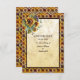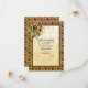 Um buquê de casamento floral de girassol amarelo e marrom impressionante sobre um fundo amarelo com uma camada de ouro. Enrolado em marrom sobre um padrão de girassol. Excelente! Também escolhi a opção de papel Champagne Shimmer neste cartão Save the Date. A parte de trás do cartão é o padrão de girassol marrom e dourado.