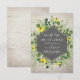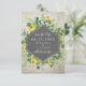 flores silvestres e folhagens com texto sobre desenho geométrico preto no centro. O fundo é de tijolo branco.