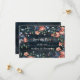 Uma ilustração clipart de aquarela de um buquê de peônias azul marinho e cobre envolto em corda de juta e arame de cobre. O buquê é colocado sobre um fundo branco. As peônias têm acabamento dourado em suas pétalas. Há também pequenas flores da mesma cor que as peônias no buquê. Tábuas de madeira azul marinho para o fundo.