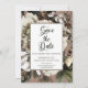 Um buquê floral de feto etéreo em tons de branco de inverno e cor-de-rosa empoeirado com verde sazonal está encoberto sobre um fundo cor-de-rosa empoeirado convidando seus convidados a "Salvar a Data" para o que é certamente uma ocasião memorável de casamento rústico. A parte de trás apresenta um fundo verde escuro. A cor do texto é escura em verde. Basta adicionar seus nomes e detalhes do casamento para completar. O texto "Salvar a Data" só pode ser editado pelo designer, mas o texto restante é editável. Design composto por Holiday Hearts Design (direitos reservados).