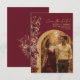 Let your friends and family know to save the date for your upcoming wedding with this beautiful card. Features a rustic boho chic design with country wildflowers and deep rich earthtone colors of burgundy and gold. Your photo is displayed in a beautiful arched frame and the title is written in elegant modern script lettering. Perfect for a fall or autumn wedding.