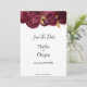 Anuncie o início da sua história de amor com a nossa "Burgundy e Dourada Floral Salvem a Data". Esta elegante e romântica design apresenta uma rica mistura de sotaques vermelhos e dourados. Que este cartão seja o primeiro capítulo da sua história de casamento, convidando sua família e amigos a marcar seus calendários e se juntar à celebração do seu amor. Peça sua "Borgonha e Dourada Floral Salve a Data" hoje.