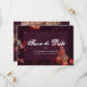 Floral romântico inspirado em pintores holandeses do século XVII em fundo vermelho burgundy escuro com texto editável e foto do casal na parte de trás