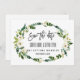 Design de cartão único e elegante com lindas rosas em aquarela branca, buquê de peônias, caligrafia moderna "salve a data", em um fundo branco. Use a ferramenta Personalizar para adicionar suas informações, alterar fontes, cor do fundo. Para itens correspondentes, visite minha Coleção Blooming Floral Branca.