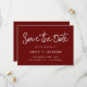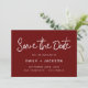 Burgundy Marsala Moderna e Elegante Manuscrito Mínimo Escrito Salva o Cartão-Postal de Casamento. O cartão de convite para salvar a data inclui a tipografia moderna de script com letra manuscrita com um design chic e simples ao qual você pode adicionar sua fotografia personalizada de noivado.