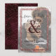 O elegante, glamoroso e moderno cartão de salvar a data do casamento com foto é perfeito para o evento contemporâneo e sofisticado. Ele apresenta uma borda de confete cintilante com glitter rosa dourado impresso falso sobre um fundo artístico de aquarela vermelha burgundy. O verso exibe o mesmo brilho, mas espalhado por toda a página com o fundo de aquarela. Este design chic, luxuoso e único será um sucesso com todos os seus convidados!