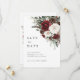 burgundy winter floral save the date card