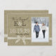 A aparência de burlap com um arco, o anúncio de fotos perfeito para salvar a data, o noivado ou qualquer anúncio. Personalize fontes e texto para se adequar ao seu estilo.