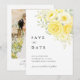 The clean composition and balanced typography keep the layout elegant and easy to read, while the combination of soft yellow tones and ivory florals adds a light and romantic touch. Ideal for couples looking for a photo save the date that blends minimal design with floral detail, perfect for spring weddings, garden weddings, and timeless wedding styles.