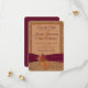 Enviar um anúncio impressionante do cartão, guardando a data, a todas as pessoas especiais que você quer comparecer ao seu casamento com este pequeno cartão de outono de 3,5"x5", com simulação de fundo de textura em burlap, o papel Kraft parece área de texto aparada em vinho e laranja com uma imagem de fita de vinho arrojada que atravessa o fundo do cartão com um aglomerado de folhas de outono e um pequeno coração de madeira simulado com uma letra burgundy que diz, "Cai no Amor" nela. Há um divisor de seta amovível em laranja queimado com o texto do casamento em uma mistura de vinho e laranja. É claro que se destacará como um belo lembrete do seu próximo casamento. Se você precisar de itens adicionais correspondentes, envie seu pedido por e-mail para niteowlstudio@gmail.com ou use o recurso de bate-papo Zazzle para entrar em contato.
