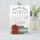 Estas belas Cartões salve a data apresentam uma bela fotografia de um solteiro de cor laranja ou rosa de cor umber queimado, de longa forma, refletindo em água com ondas e ondulações. O cartão inclui um calendário com a data do seu casamento em círculo de coração. Belo design romântico.