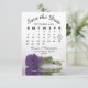 Estas belas Cartões salve a data apresentam uma bela fotografia de um rosa de cor roxa de ametista, de solteiro longo, que reflete em água com ondas e ondulações. O cartão inclui um calendário com a data do seu casamento em círculo de coração. Belo design romântico.