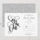 Este cartão de data de salvamento de 25º aniversário tem um calendário e um coração de amor prateado realçando a data especial. O verso tem confetes em forma de coração prateados. Desenhado por Thisisnotme©
